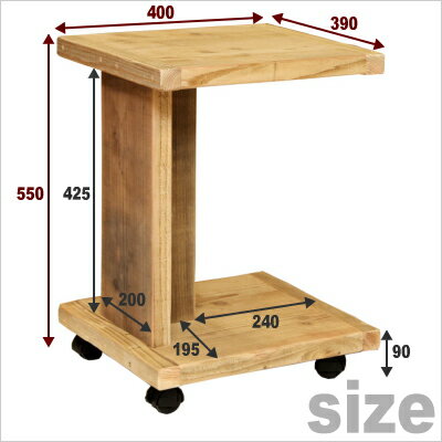 OLD ASHIBA(足場板古材)ソファ用サイドテーブル ※キャスター付きAタイプ 無塗装[受注生産] 【小型商品】