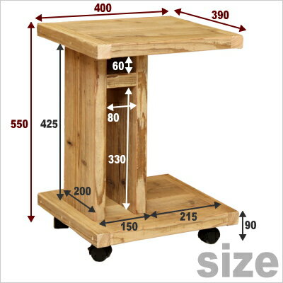 OLD ASHIBA(足場板古材)ソファ用サイドテーブル ※キャスター付きBタイプ(棚付き) 無塗装[受注生産] 【小型商品】